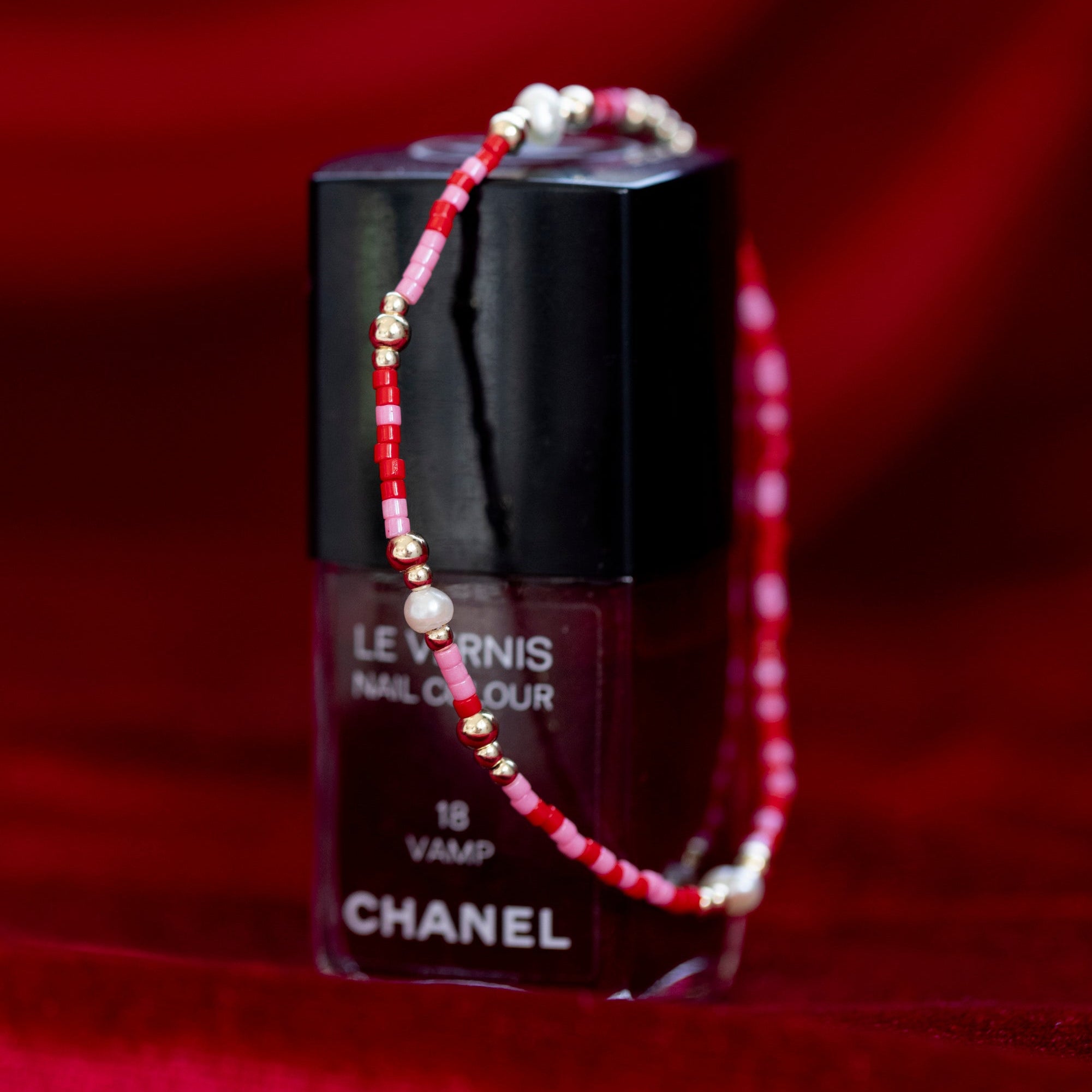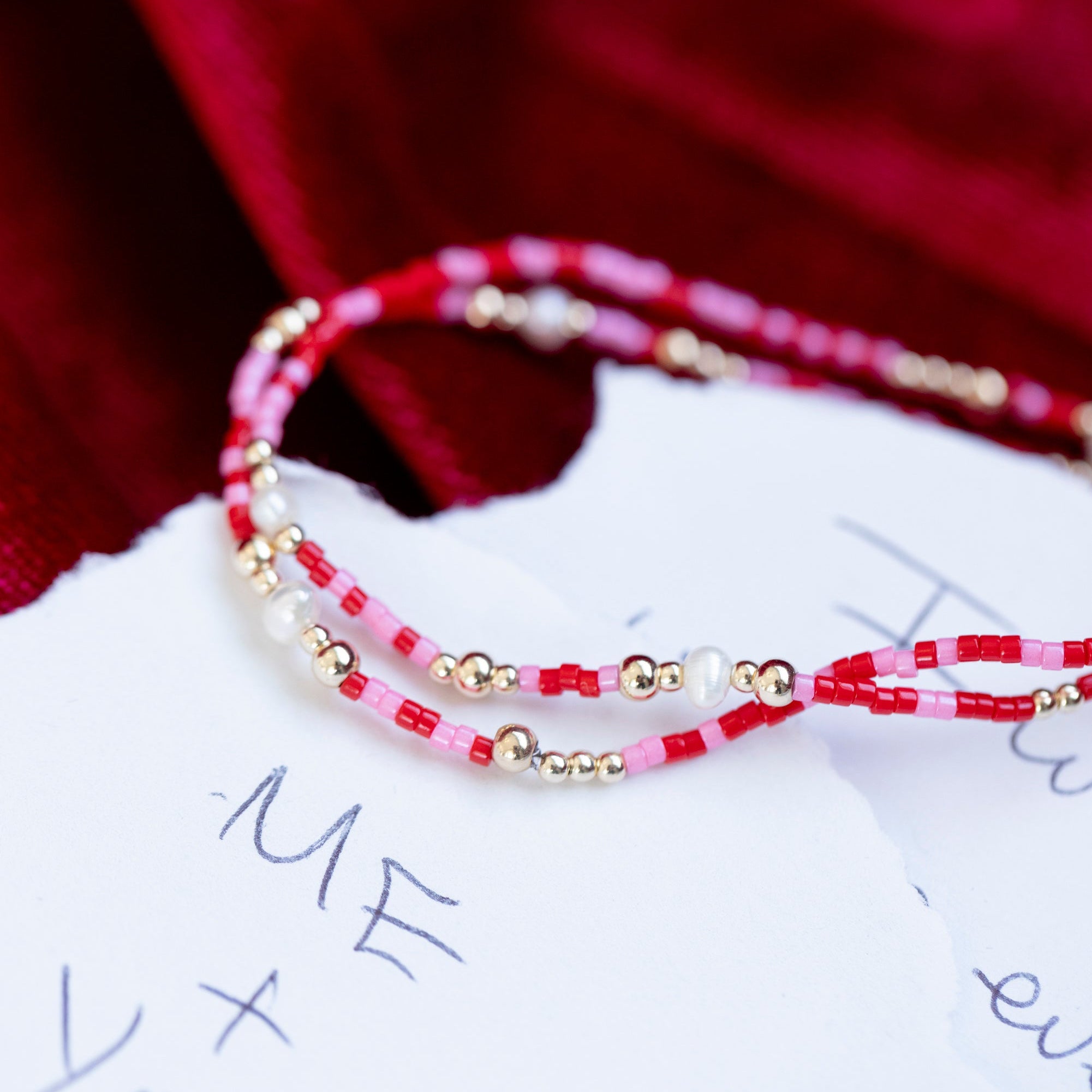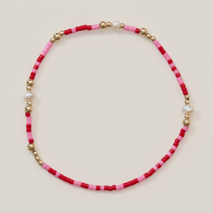 One of our best selling products- now in a new design: Mixed with red and pink, pearls and gold filled beads.