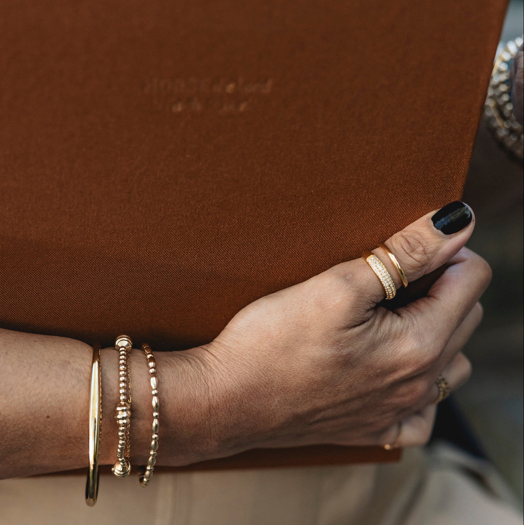 You’ll be shining in your next study session. Our Juniper bracelet comes stacked with 3mm gold filled beads + alternating rice shaped beads. A new style added to the gold beaded bijoux family is just what we needed.