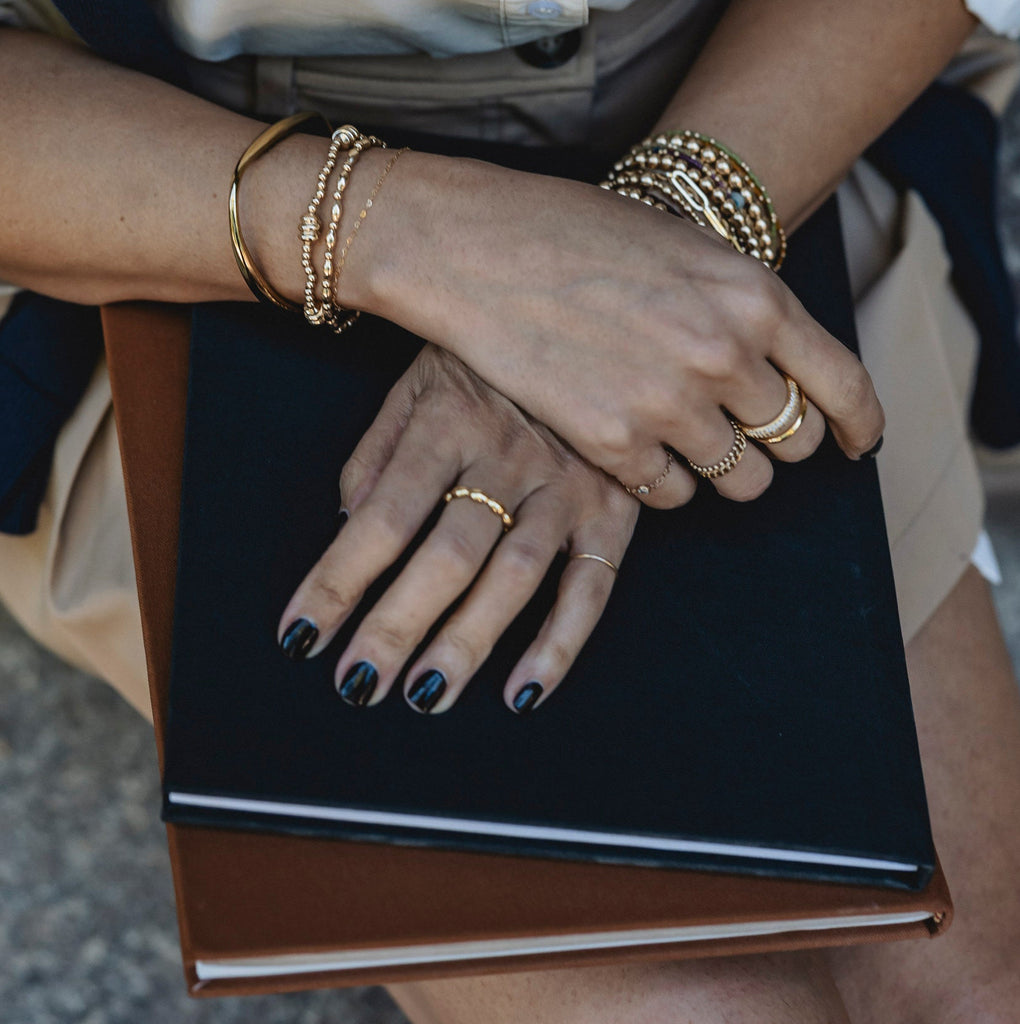 The Olive Bangle is an A+ in our books! This triangular shaped bangle will add lots of dimension to your stack. The Olive bangle is gold vermeil + adjustable to fit most wrists.